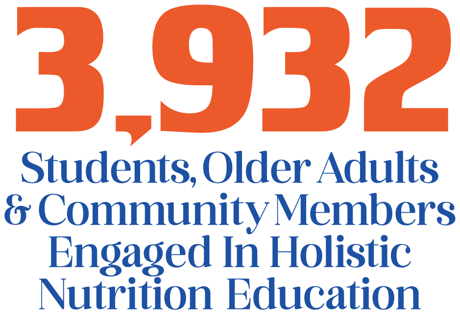 • Delivered community nutrition education services that supported long-term health, confidence and dignity for 3,932 students, older adults and community members alongside emergency food access